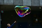 Die jüngste Fotoreihe „Bajazzotransparenz“, die in Köln bereits große Beachtung gefunden hat, beinhaltet ebenfalls in der Kölner Altstadt entstandene Aufnahmen riesiger Seifenblasen.